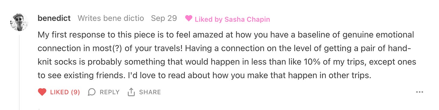 It’s my general, unstated expectation that if I travel to another country, I’ll probably experience a few moments of real bonding with total strangers, and maybe make a friend or two.